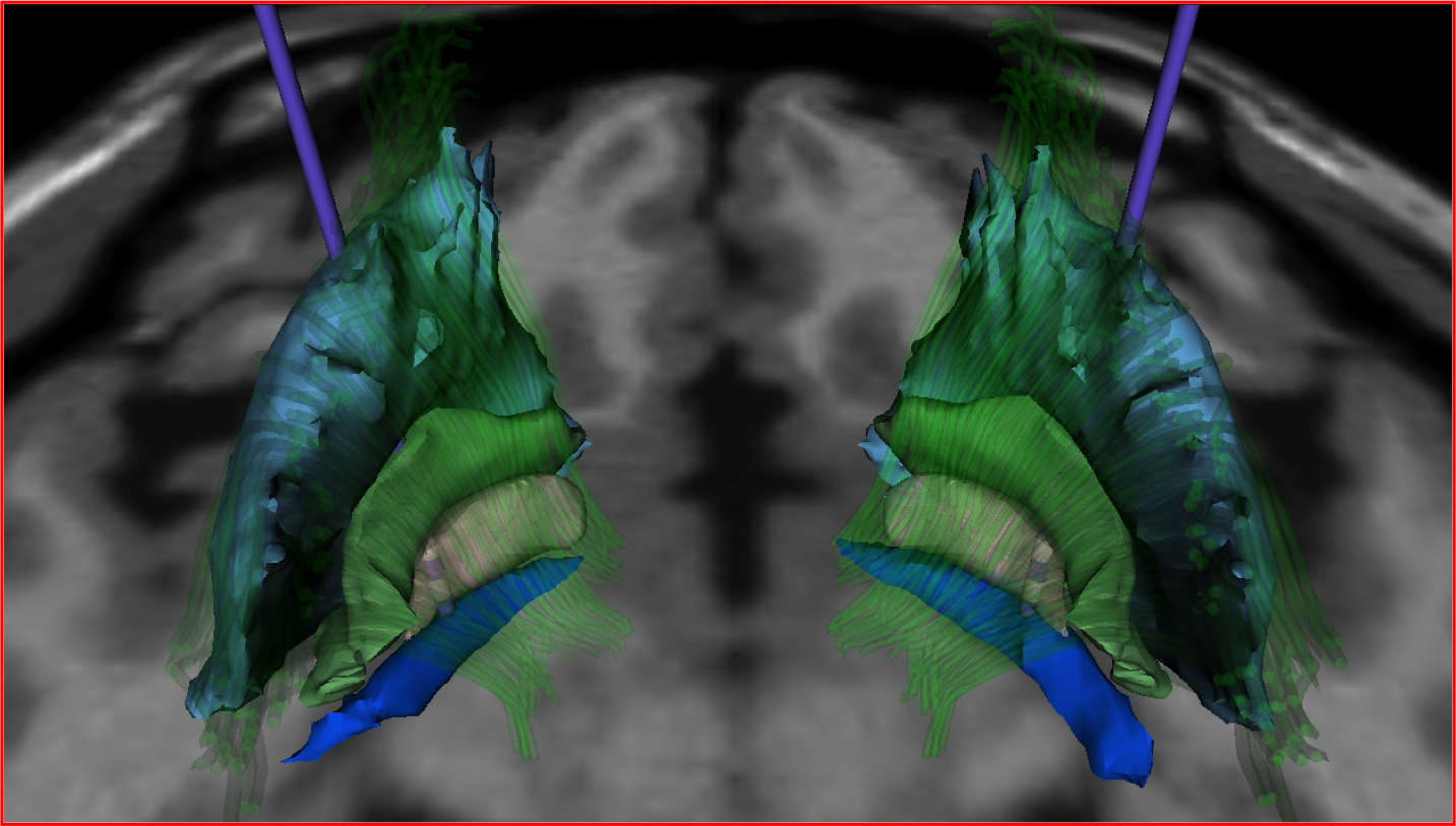 The GPi is located in the basal ganglia inferior and medial to both the putamen and globus pallidus externa (GPe) and just superior to the optic tract.