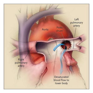 Looking as if they were out of options, their pulmonary hypertension specialist Dr. Delphine Yung introduced another option she had read about. It involved repurposing the once failed Potts shunt to redirect excess blood in the pulmonary artery to the aorta. (Created in 1940, the Potts shunt was meant to be used for the reverse purpose, to augment pulmonary blood flow. However, it quickly went out of favor because in many cases it had worked too well, causing pulmonary hypertension.)