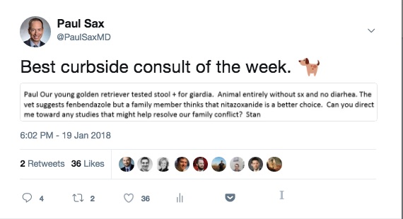 Fourth: These general internists do a whole podcast of curbsides, on multiple medical topics — so much so that they call themselves The Curbsiders! No actual patients are discussed, of course, just imaginary ones (and no golden retrievers either).