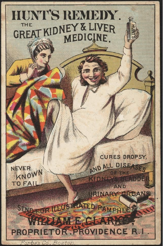 Advertisement for Hunt’s Remedy, which cured all diseases but did not require a prior authorization.