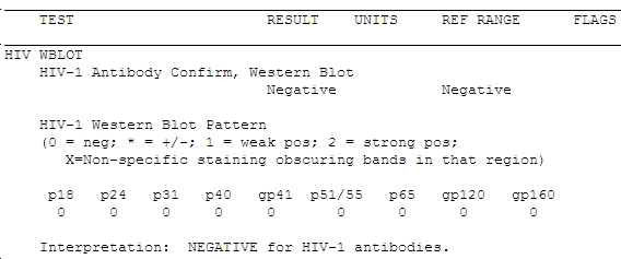 Recently I come across a strange experience with Western Blot Test. A sero-discordant couple, husband HIV 1 positive and on ART since 18 months and doing well. Since the husband is an alcoholic, seems not very strict on safe sex practice, I reexamined the wife’s status. She somehow went for a western blot instead of rapid HIV test with a renowned laboratory.